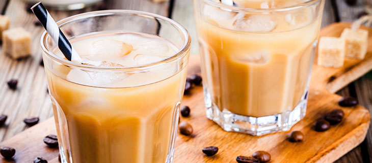 To make iced coffee, pack a glass full of ice cubes. Fill glass 2/3 full with coffee liquid. Add milk 1/4 cup milk. Add 2-3 tablespoons sweetened condensed milk and stir to combine. Taste and adjust milk and/or sweetened condensed milk as needed.