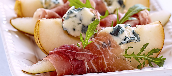 Prosciutto Wrapped Pears with Blue Cheese
